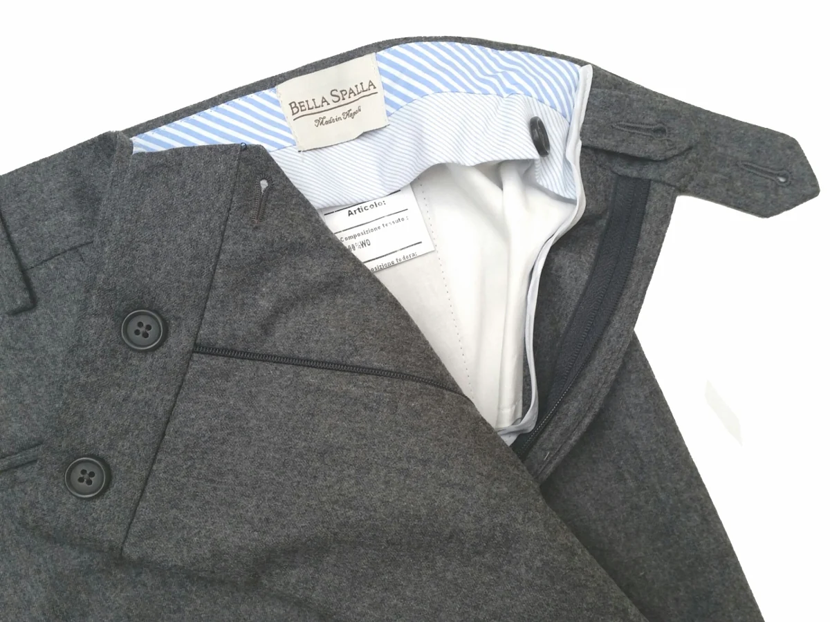 Bella Spalla Trousers: Medium grey melange, flat front, wool flannel