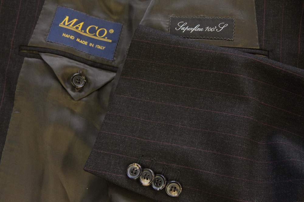 Here is a beautiful suit from Ma.Co, the parent brand which manufactures primarily under the Caruso label but also for Lanvin, Ralph Lauren Black Label, Smalto, Dior, and other elite luxury brands. With Old World craftsmanship, full canvas construction, and luxurious fabrics and timeless styling, these garments are fantastic and classically tailored with a trimmer fit, higher armhole and a nicely tapered silhouette.