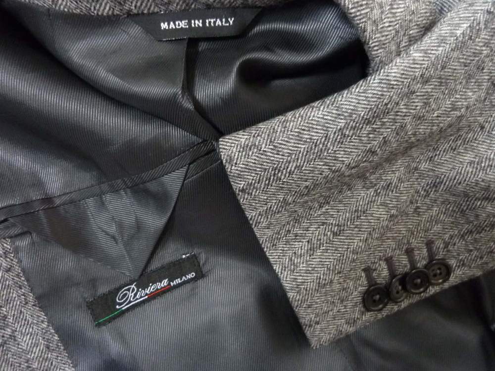 Here's a beautiful sport coat from Riviera. The silhouette is outstanding - a classically trim Neapolitan fit with high armholes and a beautiful natural shoulder featuring half canvas construction.